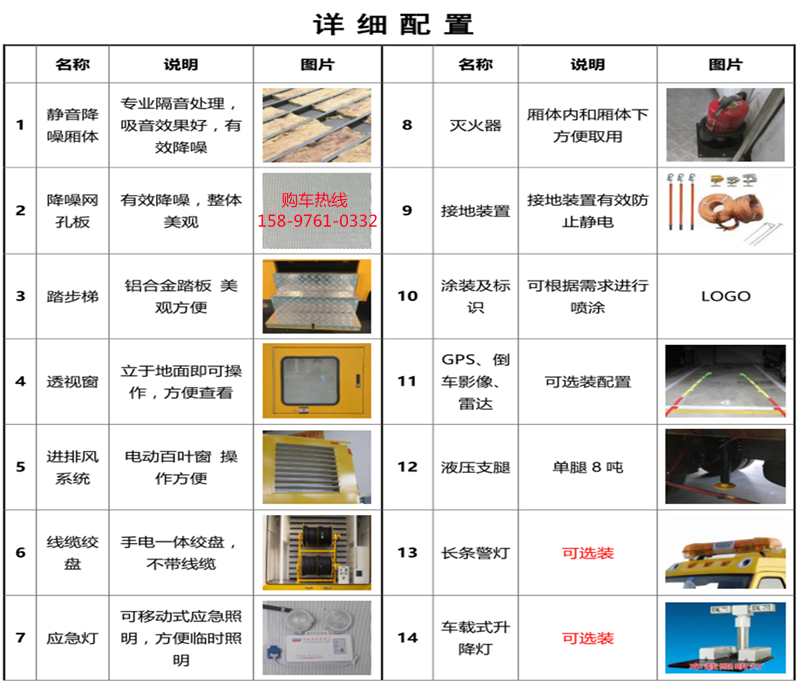 | 9.移动式泡沫罐 | 10.厢体两侧配红白爆闪灯 |